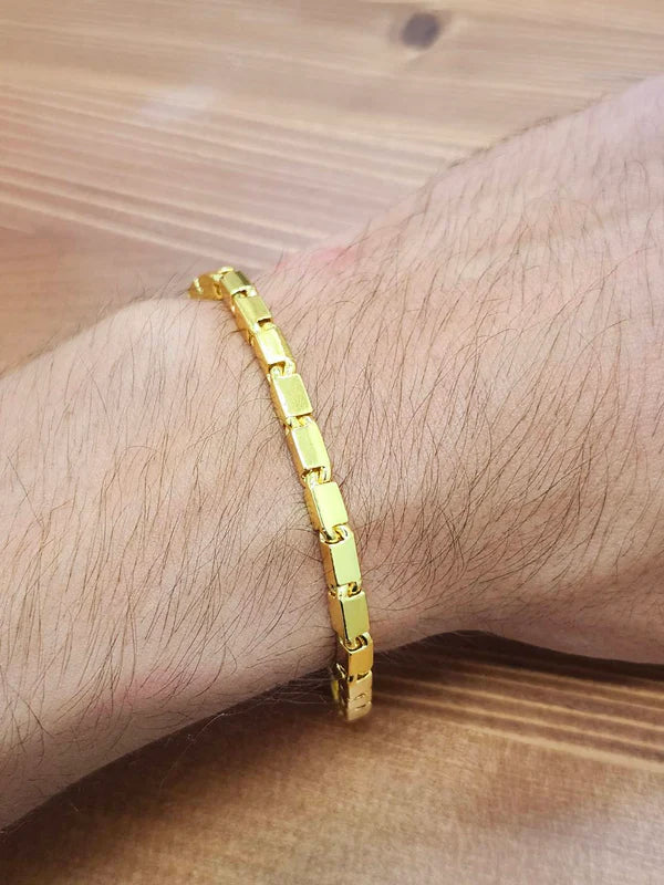 Designed with a sleek "Bar Link" silhouette, each rectangular segment is meticulously hand-finished to capture and reflect light from every angle. Whether worn as a bold standalone statement or layered for a contemporary stacked look, this bracelet brings an air of distinction and "heirloom quality" to any ensemble.