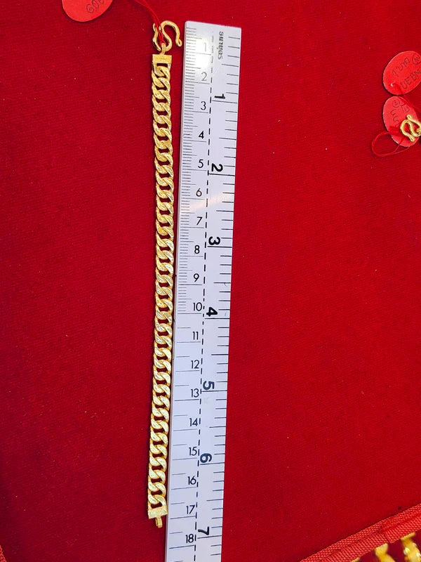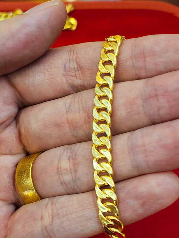 The 23k Gold Cuban Link Bracelet Command attention with the unmatched radiance of 23k gold. This Cuban link bracelet from British Jewelry combines bold proportions with the deep, buttery glow of near-pure gold. Hand-finished to a mirror shine, it is a heavyweight investment piece designed for those who settle for nothing less than the highest standard of luxury.